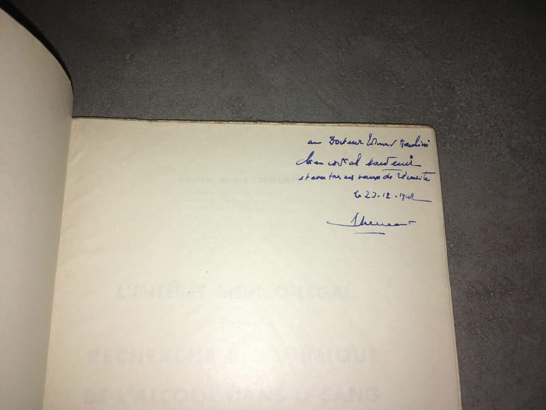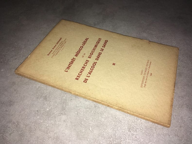 1942 1942. André Lecoanet : L'intérêt médico-légal de la recherche biochimique de l'alcool dans le sang. 1942 Imprimerie Georges Thomas Nancy. Bon état voir photo. 115pp. Livre dédicacé par l'auteur