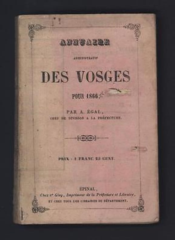 1866 1866. A. EGAL Annuaire administratif des VOSGES pour 1866 LORRAINE (88)