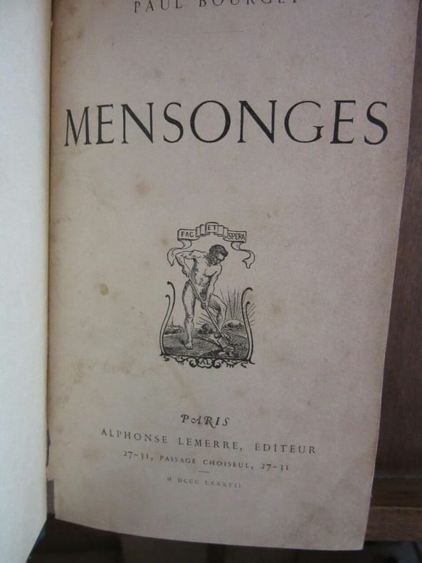 lemerre éditeur Sans date. Paul Bourget:Mensonges/Paris Alphonse Lemerre éditeur . état correct