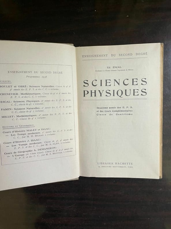 1939 1939. Ed. Pascal - Sciences Physiques : 2ème Année des E.P.S./ Librairie Hachette 1939