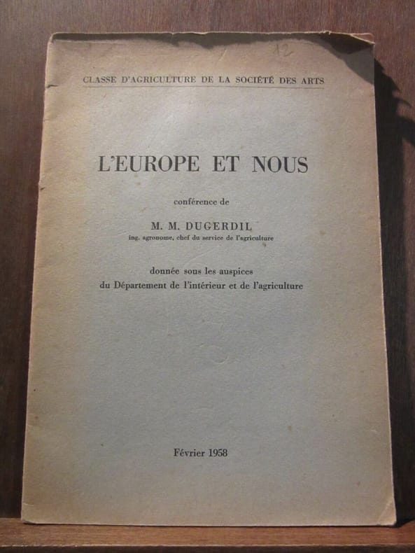 1958 1958. L'Europe et nous conférence de M.M. Dugerdil / Février 1958 Classe d'Agriculture de le Sociéte des arts . état correct