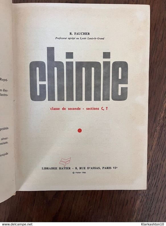 Editions Hatier 1966 1966. R. Faucher: Chimie 2. Programme 1966/ Hatier 1966