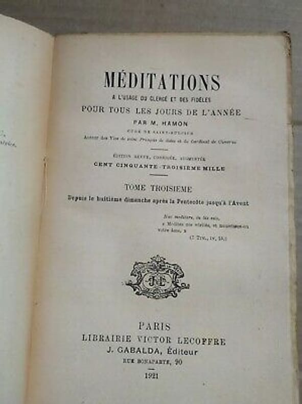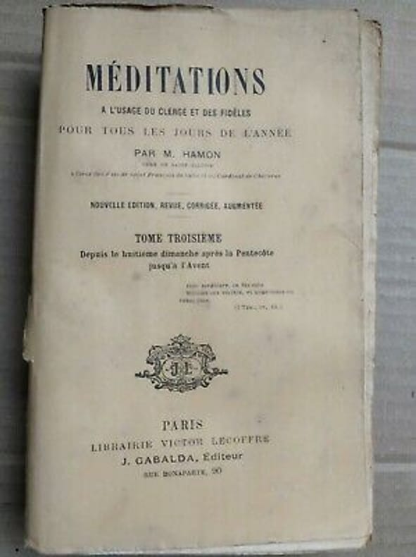 1921 1921. M.Hamon - Meditations - A L'usage du Clerge et des Fidèles: Tome 3/ J. Gabalda 1921
