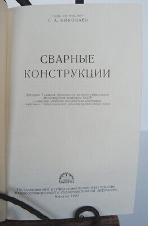 Sans date. Livre Russe Г. А. НИКОЛАЕВ СВАРНЫЕ КОНСТРУКЦИИ МАШГИЗ Très bon état