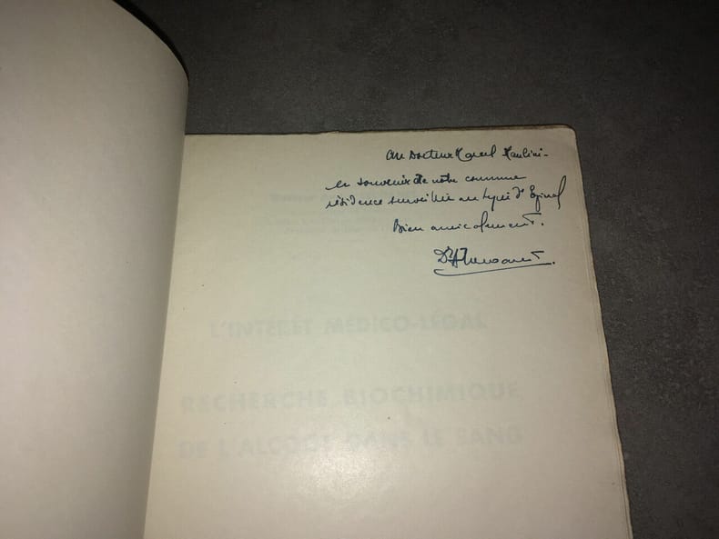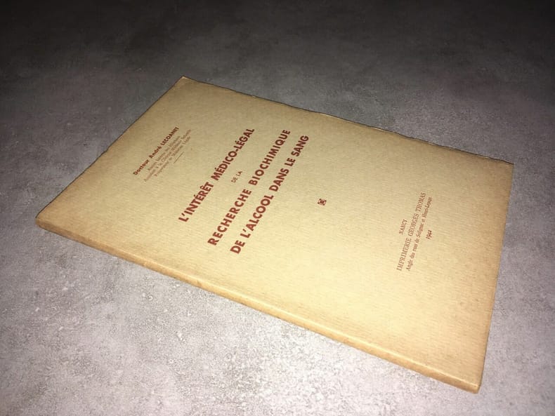 1942 1942. André Lecoanet : L'intérêt médico-légal de la recherche biochimique de l'alcool dans le sang. 1942 Imprimerie Georges Thomas Nancy. Bon état voir photo. 115pp. Livre dédicacé par l'auteur