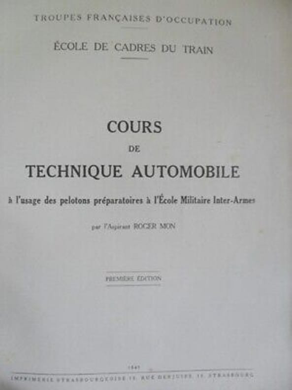 Sans date. TROUPES FRANCAISE D'OCCUPATION COURS de TECHNIQUE AUTOMOBILE WW2 ROGER MON