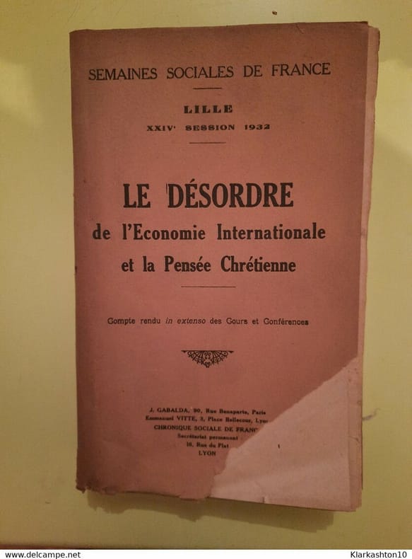 1932 1932. Le Désordre de L'Economie Internationale et la Pensée Chrétienne / Lilie 1932
