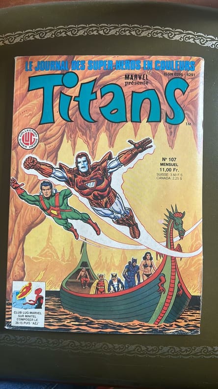 1987-1988, éditions LUG, LUG Super Héros, in-8 brochés, Titans - divers numéros (4Eur pièce) 100, 101, 103 (2 exemplaires), 104, 105 (3 exemplaires), 106 (2 exemplaires), 107, 108, 109 | Etat : bon état, couvertures un peu défraîchies, frottements sur les coins et coiffes (Ref.: Gaman1484)