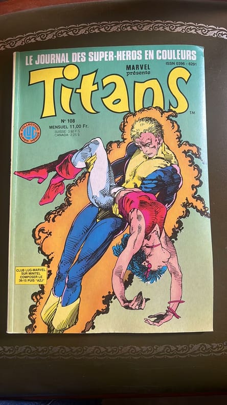 1987-1988, éditions LUG, LUG Super Héros, in-8 brochés, Titans - divers numéros (4Eur pièce) 100, 101, 103 (2 exemplaires), 104, 105 (3 exemplaires), 106 (2 exemplaires), 107, 108, 109 | Etat : bon état, couvertures un peu défraîchies, frottements sur les coins et coiffes (Ref.: Gaman1484)