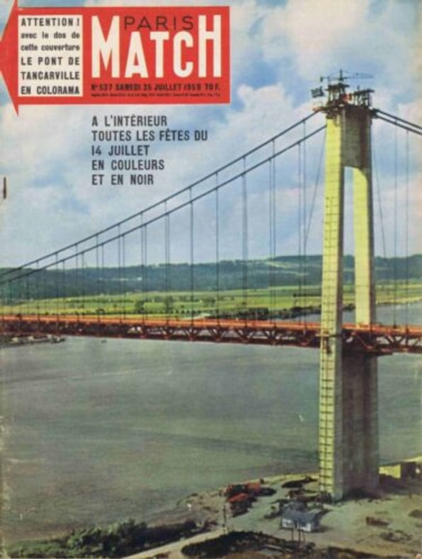 72 PAGES-26,5 CM X 35 CM-EN COUVERTURE AVEC LE DOS DE CETTE COUVERTURE LE PONT DE TANCARVILLE EN COLORAMA"-LE PONT DE TANCARVILLE ATTRACTION NATIONALE 33 MILLIONS EN 13 JOURS-PARIS-LONDRES 50 ANS APRES LES JETS DANS LE CIEL DE M. BLERIOT-14 JUILLET 1959 80 MILLIONS D'HOMMES SOUS UN DRAPEAU-DESSIN SAVIGNAC POUR PUBLICITE "MOBIL"-DE GAULLE ENTRAINE LA FETE VERS LES JARDINS DE L'ELYSEE-MORT D'UN CLOWN, GROCK-L'ESPAGNOL ORGUEILLEUX AVAIT DIT: "JE GAGNERAI", LE GRAND BOBET VAINCU A DIT ADIEU AU TOUR, L'AIGLE DE TOLEDE DORT AVEC SON VELO