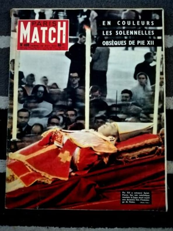 Sommaire : en couleurs les solennelles obsèques de Pie XII - sous le ciel de Paris, le symbole de la prospérité - lune : le glorieux échec de Canaveral - Algérie : l'école descend du ciel... Classification Dewey : 70.49-Presse illustrée, magazines, revues