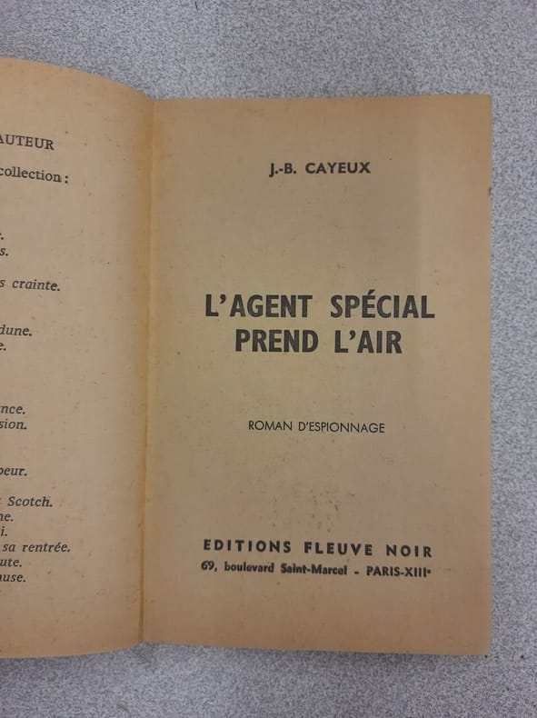 Edition fleuve noir espionnage 1965 1965. J.B. Cayeux - L'Agent spécial prend l'air / Fleuve Noir Espionnage Nº 502 1965