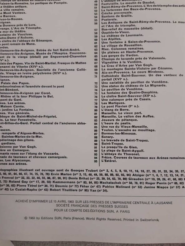 Coloris très vifs. Marges d'un cm, la marge supérieure, très courte a été doublée. Commentaires tirés de Rivages & Terres de Provence de Mireille Pastoureau, Jean-Marie Homet et Georges Pichard, pages 86-87.