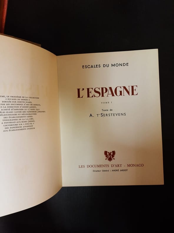 "Collection "" Escale du Monde "" dirigée par Odette Diard - Table : Carte de l'Espagne, Texte de A. T'Serstevens, Notices sur les héliogravures, Notices sur les planches en couleurs... Classification Dewey : 946-Espagne, Portugal"
