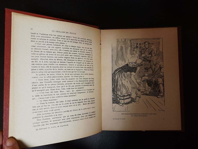 Illustration de A. Beynet. Il se passe des choses bizarres dans la maison de John Peerybingle. Pourtant, hier encore, John le voiturier et sa femme Dot étaient heureux. Or, voici que se profile la silouette inquiétante de Tackleton qui tente, par de sombre intrigues, de détruire l'harmonie des joyeux Peerybingle... Un grand classique de la littérature pour les enfants où tout finit très bien chez les gens honnêtes et simples.