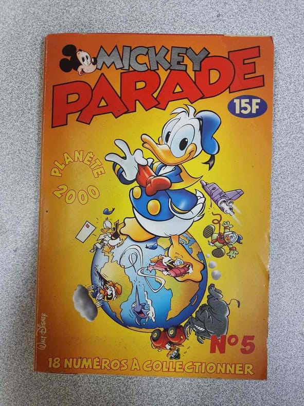 edi-monde, in-12 brochés de 254 pages, couvertures illustrées Mickey Parade : n°8, Donald, super...tout!, n°9, Mickey l'as des as, n°18, S.O.S. Mickey, n°19, Messire Donald se déchaîne, n°27, les affaires en or d'oncle Picsou, n°29, Donald l'as du foot, n°722 bis, le mystère rode, n°756 bis, Picsou parade, n°856, Donald, Globe-trotter, n°1182, Donald fou!fou!fou, n°1225, Picsou prend la barre n°1243, Mickey a du flair, n°1251, les surprises de l'oncle Picsou, n°1293, Mickey fait la loi, n°1381 bis, Mickey ouvre l'oeil, n°1398, Tout va bien Donald, n°1424, Picsou en fête, n°1433, Mickey mène l'enquête, Almanach 1978 Picsou Magazine : n°46, la [...] | Etat : bon état général, couvertures défraîchies, dos, coins et coiffes frottés (Ref.: ref87595)