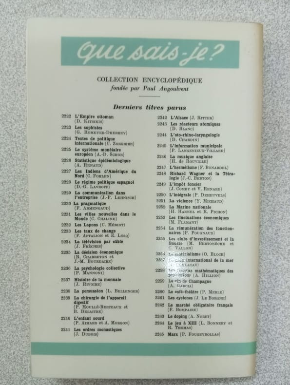 Presses Universitaires de France Edition originale Première édition Novembre 1985. 1985. In-12. Broché. Bon état, Tâchée, Dos satisfaisant, Intérieur frais. 128 pages illustrées de quelques dessins en noir et blanc. . . . Classification Dewey : 330-Economie