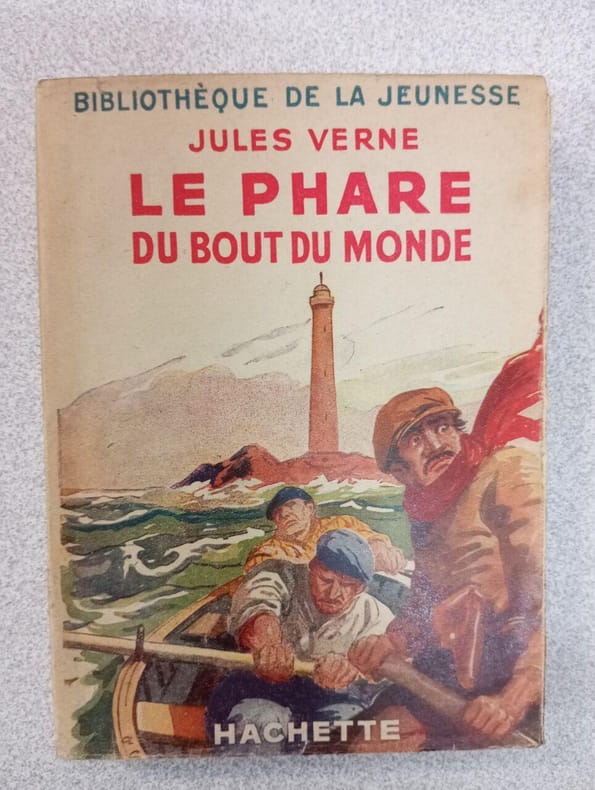 Première et seule édition in-8 illustrée par L. Benett comportant également de nombreuses photographies. Cartonnage éditeur Hetzel "à l'éventail et à l'éléphant" en pleine percaline rouge signé Engel, premier plat polychrome signé Engel, second plat de type "i" comme indiqué par Jauzac, dos au phare, pages de garde bleues d'origines, toutes tranches dorées. Gardes bleues d'origine ombrées marginalement comme habituellement, une pliure et une micro-déchirure sur la première garde, petites taches noire et de décoloration sur le second plat, tampon imprimé de bibliophile en tête de la page de faux-titre. L'Invasion de la Merest un roman d'aventure se déroulant en Tunisie et évoquantun projet authentique, représentatif de l'esprit colonial français. Dans lesannées 1880,François Élie Roudaireprojette de noyer une partie du désert duSaharasous les eaux de la Méditerranée, en creusant un canal depuis legolfe de Gabèsjusqu'auxchotts(via lechott el-Jérid). Le projet finit par être abandonné en raison des difficultés, mais Jules Verne lui donne une suite romanesque. Le Phare du bout du mondevoit quant à lui son action se dérouler en Amérique du Sud. - Photographies et détails sur www.Edition-Originale.com -