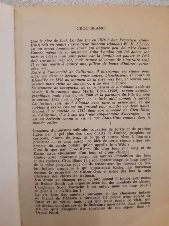 Editions LITO 1997 1997. Jack London: Croc Blanc/ Editions Lito 1997 . Jack London: Croc Blanc/ Editions Lito 1997