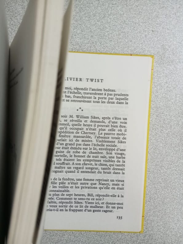 "Reliure d'édition pleine peau dorée à l'or fin, volume publié sous la direction de Pierre Leyris; traduction de Sylvère Monod (Papiers), Francis Ledoux (Olivier Twist)."