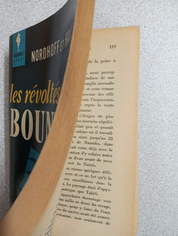 Les petits révoltés du BOUNTY, une parodie dessinée du célèbre romande de Sir J BARROW / Texte et scénario de MARIJAC / Dessin de TRUBERT / Editions de CHATEAUDUN, sans date Copyright Arts graphiques Presse / Imprimeries MONT LOUIS et P.R. Clermont Ferrand Total de 64 pages Le visu extérieur est comme celui que vous voyez sur la photo / Salissures extérieures visibles sur la photo / Agraphes rouillées, les 4 pages du centre sont entièrement détachées, quelques une sont partiellement détachées, quelques petites coupures latéréales, et des coins de pages pliés