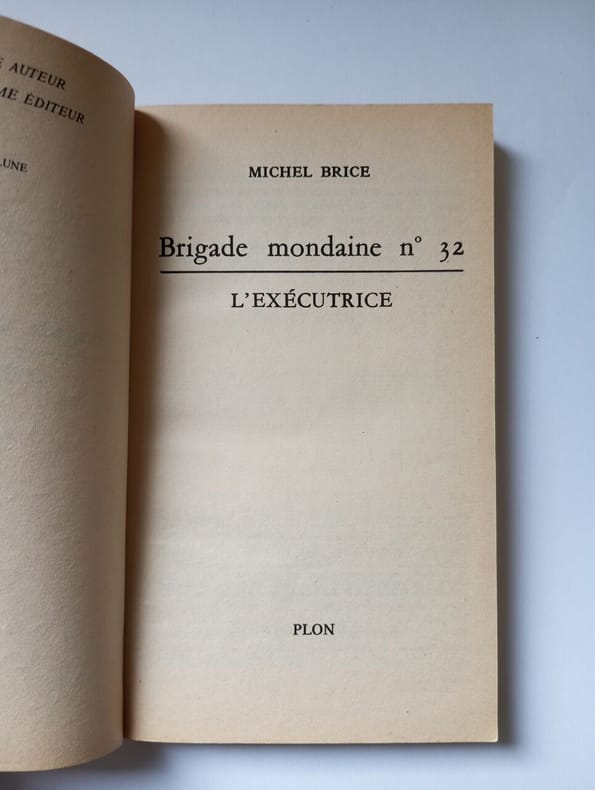 Plon 1981 1981. Michel Brice: Brigade mondaine-L'exécutrice/ Plon 1981