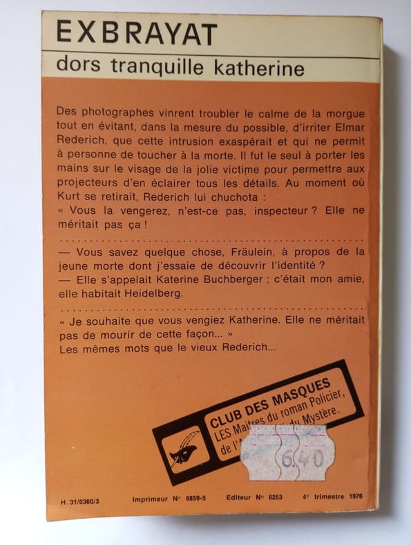 1967 1967. Exbrayat: Dors tranquille Katherine/ Le Livre de Poche 1967 Référence: LMA16N. Exbrayat: Dors tranquille Katherine/ Le Livre de Poche 1967