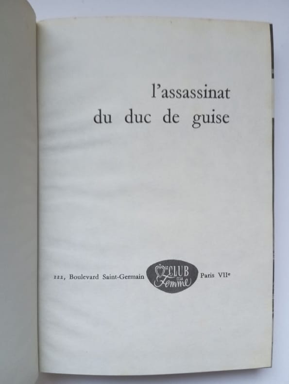 Editions Colbert 1942 1942. Pierre Lafue: L'assassinat du Duc de Guise/ Editions Colbert 1942 . Pierre Lafue: L'assassinat du Duc de Guise/ Editions Colbert 1942