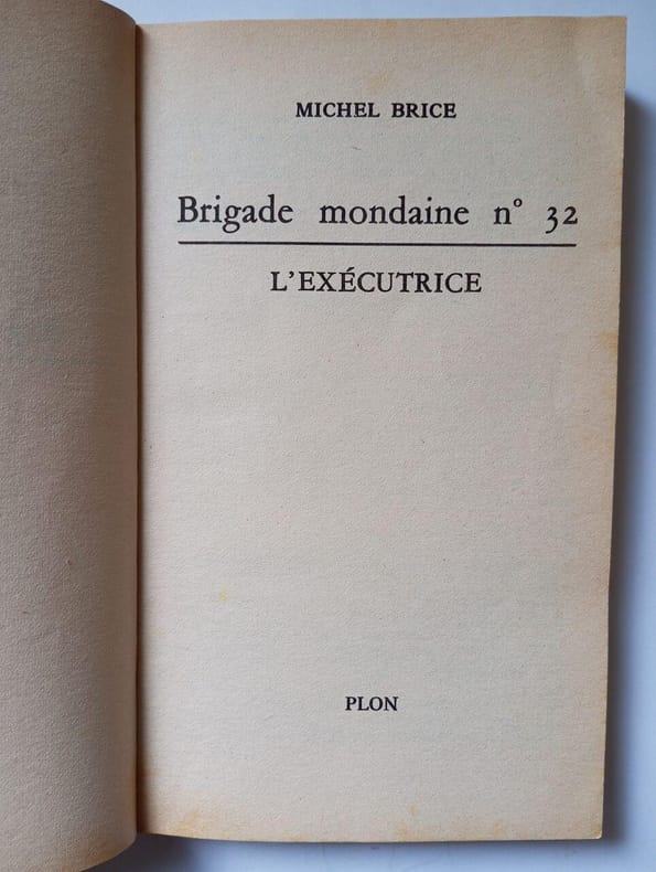Plon 1981 1981. Michel Brice: Brigade mondaine-L'exécutrice/ Plon 1981