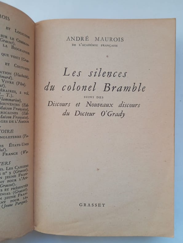 1921 1921. 5 ANDRE MAUROIS - LES SILENCES DU COLONEL BRAMBLE / 1921