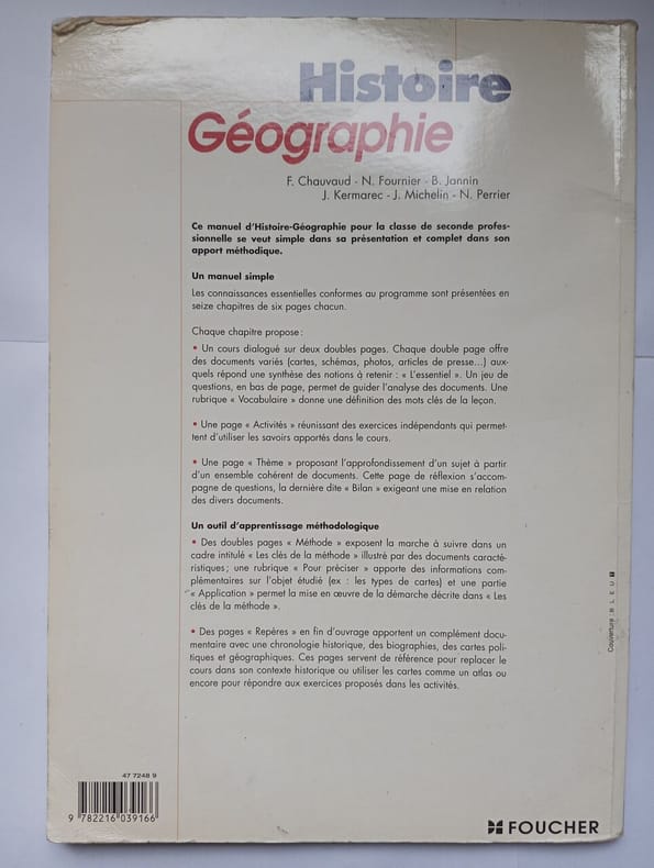 Foucher. 1994. In-8. Broché. Etat d'usage, Couv. légèrement pliée, Dos frotté, Intérieur acceptable. 159 pages. Illustré de nombreux dessins et de nombreuses photos et cartes en noir et blanc et en couleur, dans le texte.. . . . Classification Dewey : 372.89-Livre scolaire : histoire / géographie
