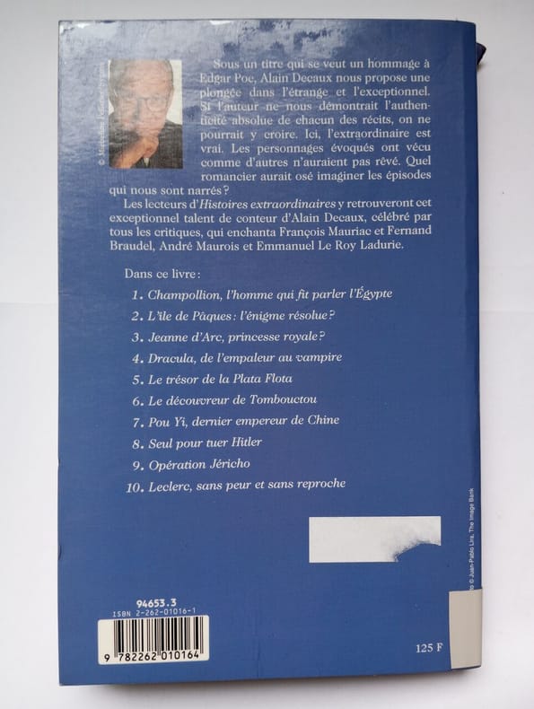 État : Très bon état - Année : 1982 - Format : in 8° - Pages : 251pp - Editeur : Presses de la Cité - Lieu d'édition : Paris - Type : Broché - Divers : Coins des plats de couv très légèrement émoussés. - Commander rapidement : https://www.bons-livres.fr/livre/robert-de-la-croix/889-histoires-extraordinaires-de-la-mer?lrb