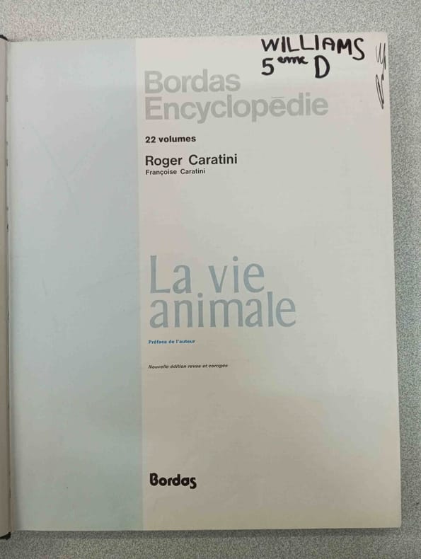 Bordas Encyclopédie en 23 volumes, sous la dir. de Roger Caratini. Protozoaires. Du ver de terre à la pieuvre. Les arthropodes. Les poissons... Classification Dewey : 590-Zoologie
