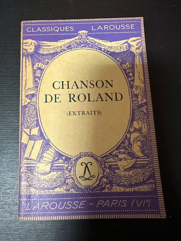 mb.Club du livre Paris, Philippe Lebaud éditeur, 1962. Couverture rigide.les 2 livres sont en tres bon etat et sont dans un coffret, ce dernier est legerement frotte, in-4 , le coffret c'est un emboitage avec le dos de 2 livres. Reliure du livre principale est en pleine cuir marron ornée de cinq clous en laiton sur chacun des plats et d'un décors de croisettes et de losanges entrelacés dans le goût médiéval. Dos à 5 faux nerfs, portant le titre en lettres dorées (19x24 cm)pour les chanson de Roland et l'autre livre a une reliure en pleine cuir marron portant les armoiries de Kenelm Digby sur le plat supérieur. Dos muet à 4 faux nerfs (12x18 cm)pour le manuscrit d'Oxford 72 feuillets. Traduction originale du manuscrit d'Oxford et commentaires de Louis-Robert Plazzolles. L'ouvrage de la chanson de Roland a des enluminures de Jean Gradassi pleines pages. Tranche supérieure dorée. Avec un FACSIMILE du manuscrit de la Bodleian Library d'Oxford reproduisant fidèlement toutes les particularités du manuscrit (irregularités des feuillets, trous.) Le tout conservé dans un LUXUEUX EMBOITAGE legerement abime reproduisant la forme de deux livres factices reliés en peau marron et portant les titres "La chanson de Roland" et "Le manuscrit d'Oxford". Le manuscrit d'Oxford est le plus ancien manuscrit de chanson de geste qui nous soit parvenu (XIIème siècle). Il s'agissait probablement d'un modeste volume à l'usage d'un jongleur chargé de réciter ou chanter ces vers. Il fut offert au XVIIème siècle à la Bodleian Library par Kenelm Digby, philosophe brillant et fantasque, et ami de Descartes.photos possibles