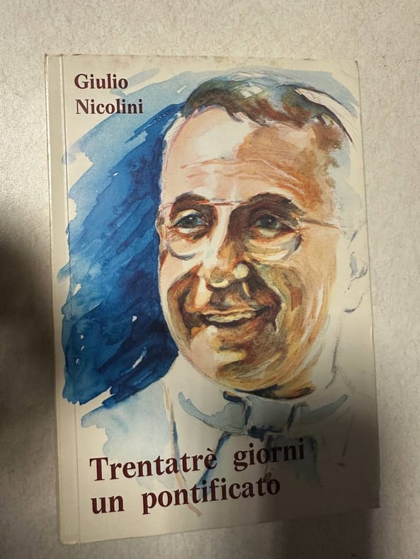 Edizione del 1983 di questo volume sul pontificato di Papa Giovanni Paolo I al secolo Albino Luciani (1912-1978) a cura di Giulio Nicolini. Numerose foto in bianco e nero e a colori nel testo. In buone condizioni. Copertina in tela editoriale con sovraccoperta in ottime condizioni generali con lievi usure ai margini e dorso. Legatura in buone condizioni. All'interno le pagine si presentano in buone condizioni con rare fioriture. Usure al margine destro delle prime 7 pagine. In 4. Dim. 30,5x23,5 cm. Pp. 157+(3). Edition of 1983 of this volume about the Pontificato of the Pope Giovanni Paolo I born Albino Luciani (1912-1978) by Giulio Nicolini. Different black and white and coloured photoes in the text. In good conditions Cloth editorial cover with dustjacket in very good general conditions. Binding in good conditions. Inside pages are in good conditions with occasional foxing. Wearings in the right edge of the first 7 pages. In 4. Dim. 30,5x23,5 cm. Pp. 157+(3).