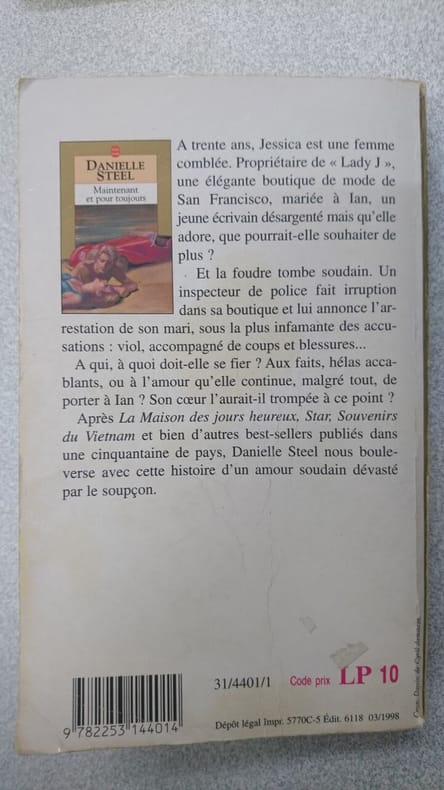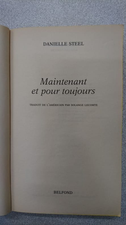 L'AIGLE SOLITAIRE + LA FOUDRE + MALVEILLANCE + COUCHER DE SOLEIL A SAINT TROPEZ + A BON PORT + LE RANCH + L'ANGE GARDIEN + MAINTENANT ET POUR TOUJOURS + TRAVERSEES + IL ETAIT UNE FOIS L'AMOUR + LE KLONE ET MOI + UN SI GRAND AMOUR + PALOMINO + RENDEZ-VOUS + LES PROMESSES DE LA PASSION + PRINCESSE + LOVING + COUP DE COEUR + SECONDE CHANCE + RANCON. Classification Dewey : 820-Littératures anglaise et anglo-saxonne