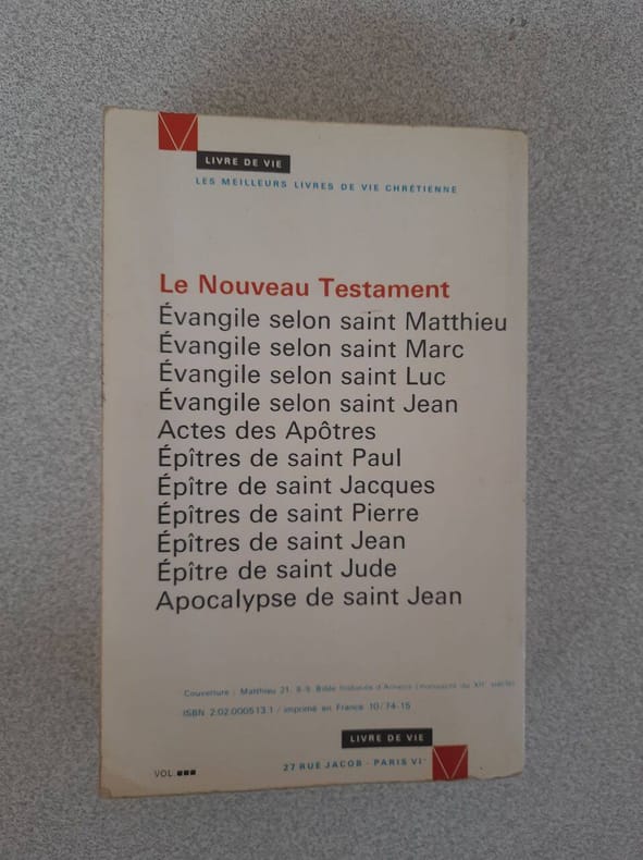 Paris chez Montalant 1714 466 pages in-12. 1714. relié. 466 pages. 1725 - Seconde édition. 11 Volumes In-12 (170x100 mm) 648+385+654+566+392+547+398+395+447+444+466 pages. Lives reliés Plein cuir Dos à cinq nerfs ornés de caissons dorés. MANQUE le tome V pour que l'ensemble soit complet en 12 Volumes. Réflexions morales avec des notes sur le Nouveau Testament sur l'Epîte de Saint Paul sur les Epîtres de Saint Paul aux Corinthiens traduits en François. Et la Concorde des quatre Evangélistes. Avec une carte dépliante au tome 2 de la Judée. Reliures en état correct bien que frottées avec quelques manques de cuir et une charnière fendue. Intérieurs avec peu de rousseurs. Poids : 3660 gr
