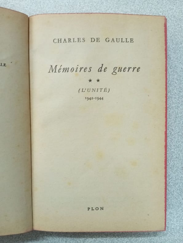Sommaire des titres : Mémoires de guerre TOME I+II+III - L'unité 1942-1944 - L'appel 1940-1942 - La salut 1944-1946 / Discours et Messages - TOME I+II+III+IV+V - Pendant la guerre 1940-1946 - Dans l'attente 1946-1958 - Avec le renouveau 1958-1962 - Pour l'effort 1962-1965 - Vers le terme 1966-1969 / LETTRES NOTES ET CARNETS - 1905-1918 - 1919-JUIN 1940 - JUIN 1940-JUILLET 1941 / MEMOIRES D'ESPOIR - LE RENOUVEAU 1958-1962 - L'EFFORT 1962-... Classification Dewey : 944.0821-De Gaulle