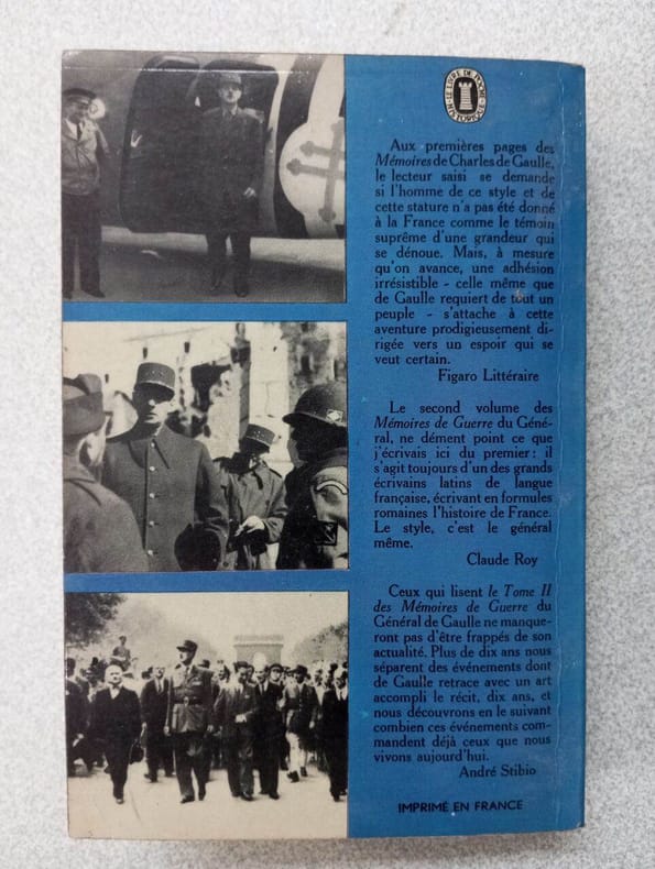 Paris, éd. Presses Pocket, 1980, 4 vol. in-12, cartonnage souple, couv. photos en noir et en coul. éd., 448 - 512 - 544 - 416 pp. nb. cartes en noir, tables des matières, Très bel ensemble de 4 volumes des mémoires de guerre et d'espoir du général de Gaulle. Bien complet. Pas courant Très bon état