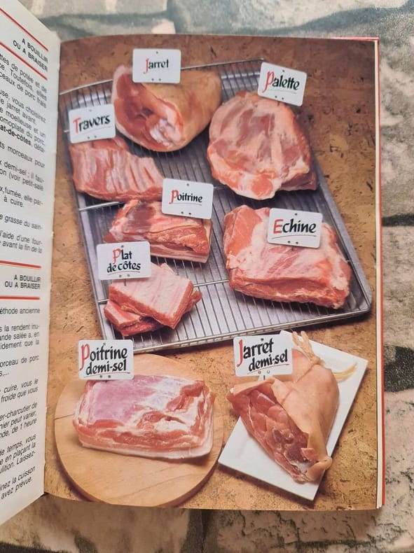 Coll. "Académie de la viande", Rungis, éd. Frères Metzger, 2012, EDITION ORIGINALE, fort pt. in-8, cartonnage souple, couv. texte en bleu et blanc sur fond noir éd., 792 pp., nb. photos en coul. sommaire, glossaire espagnol - français - anglais, bibliographie, explication de l'iconographie coul., texte en français et en anglais, text in english and french, Un dictionnaire indispensable pour connaître à fond la viande, la choisir, la découper et la cuisinier, et le tout en français, en anglais et en espagnol ! donc un Must ! Très bon état, comme neuf