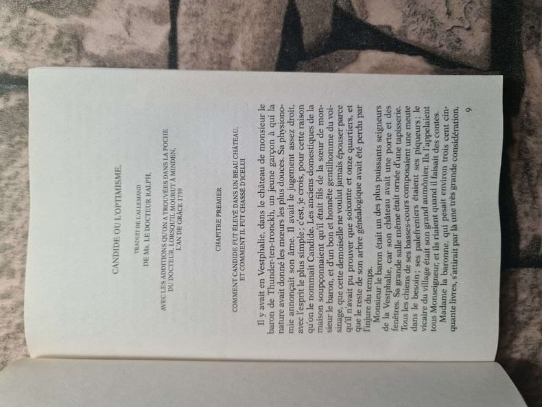 Rare first edition of this interesting, anonymously written continuation of Voltaire's Candide, which wraps up the adventures of the hero. ""Turning his back on both Voltarian satire and scepticism, the novelist proposes a moralistic fable - the focal point of which is a rehabilitation of Leibniz's Theory of Optimism. The main body of the novel tells the story of Candide and his new wife, the noble Zénoïde, in their sumptuous Copenhagen townhouse. Before achieving this happy state, however, the couple endures various trials and tribulations reminiscent of the newly minted gothic genre. ""Candide au Dannemarc"" also features a satirical portrait of Jean-Jacques Rousseau."" (Éduard M. Langille, from the introduction to the new edition of ""Candide au Dannemarc"", edited by him). Voltaire's ""Candide"" had inspired a sequel that appeared in 1760, which is attributed to Charles-Claude-Florent de Campigneulles, but which might be by Henri-Joseph du Laurens. The present work is a direct continuation of that sequel (although it ignores the happy ending of the previous work), but evidently from the preface, it is not written by the same author. It has still not been determined who the actual author is.The part on Rousseau (pp. 148-167) in the present work has become quite famous, portraying him satirically as trying to make a living in Copenhagen from copying music while plotting to escape to America. The novel ends with Candide leaving Denmark to be the Danish ambassador in Russia.A secoond edition appeared in 1769.