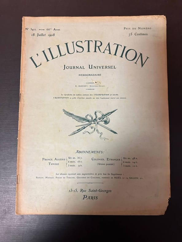 Au bureau du journal. 18 juillet 1908. In-Folio. Broché. Bon état, Couv. convenable, Dos satisfaisant, Intérieur frais. 16 pages environ illustrées de nombreuses gravures en noir et blanc - Paginées de 34 à 44 - avec couverture et pages publicitaires + 4 gravures en couleurs hors texte.. . . . Classification Dewey : 70.4417-L'illustration / Figaro salon