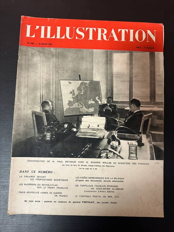 SOMMAIRE : Sommaire : M. Sumner Welles, délégué par le président Roosevelt en Europe, est reçu a l'Elysée par M. Albert Lebrun, L'offensive de paix contre la Finlande par Leland Stowe, Les guerriers du moyen atlas dans le nord est de la France, Les visées allemandes sur la Belgique et sur la cote flamande par le prof J. Wullus-Rudiger, Le torpilleur français Simoun éperonne un sous marin allemand Classification Dewey : 70.4417-L'illustration / Figaro salon