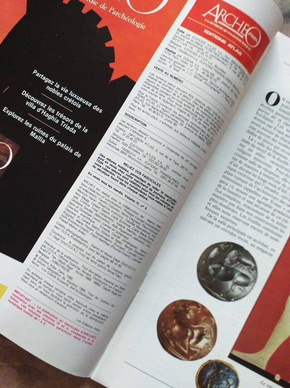 10 vol. in-4 en fascicules rassemblés en classeurs éditeur, très nombreuses ill. couleurs, coll. Archéo - l'encyclopédie de l'archéologie, éditions Atlas, 1987 à 1989, 320 pp. par vol. Ne manquent à la série complète que : ; XI. et XII. Le grand guide archéologique de la France ; XIII. Dossiers. Dans la même collection, on joint, sous une pochette commune qques dizaines de fiches couleurs in-4 "Images du passé", avec un photo couleur au recto et un long descriptif au verso.