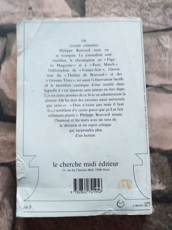 Paris : Le Cherche Midi, Collection "Les Pensées", 1981, 1e année d'édition. Broché 20,5x13,5 cm, couverture couleur, 186 pages, dessins en noir in-texto de l'humoriste. [Couverture très légèrement jaunie, une petite tache en début d'ouvrage, une en fin]