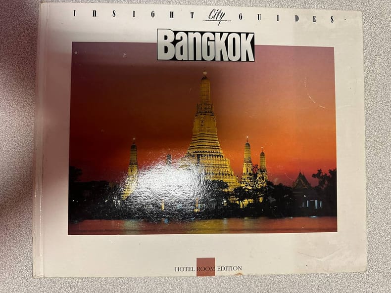 Bangkok, Edited, printed and published by Mr Javidh Rangthong, 1961 1 brochure, stapled, illustrated softcovers, 106 pp., with information on what to do and where to go, illustrated with a Bangkok map and many advertisements.