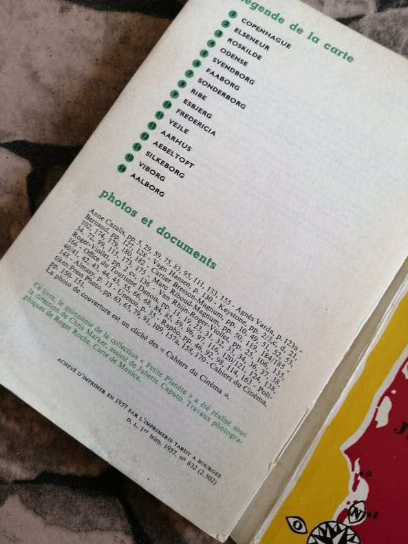Copenhague, 1935, in-12, 281 pp, 12 pl. de photos, une planche de pavillons danois en 2 couleurs et une carte en dépliant hors texte, plus une grande carte dépliante en couleurs du royaume du Danemark sous pochette in fine, reliure percaline carmin de l'éditeur, dos lisse, titre et écusson blancs au 1er plat, bon état. Peu courant