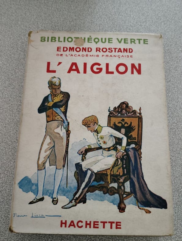 Paris Eugène Fasquelle Sans date. 262 pp. In-12. Relié. En bon état. 1 volume. 314ème mille.L'Aiglon est un drame d'Edmond Rostand écrit en 1900 et représenté pour la première fois à Paris, au théâtre Sarah-Bernhardt, le 15 mars 1900. « L'Aiglon » désigne le fils de Napoléon Ier (l'Aigle) et de Marie-Louise d'Autriche, également connu sous les noms de roi de Rome, de Napoléon II, de duc de Reichstadt. Dans ce drame en six actes, écrit en alexandrins, l'Aiglon, fils de Napoléon, cherche qui il est par rapport à son père, et cherche à marcher dans ses traces et ne pas être « un front qui se colle à des vitres ».Parmi les scènes remarquables, on peut noter la dernière scène de l'acte III.