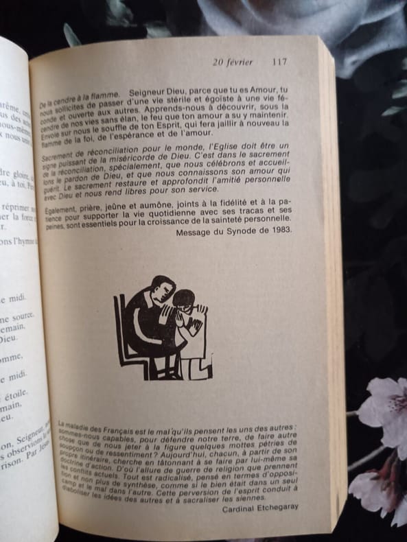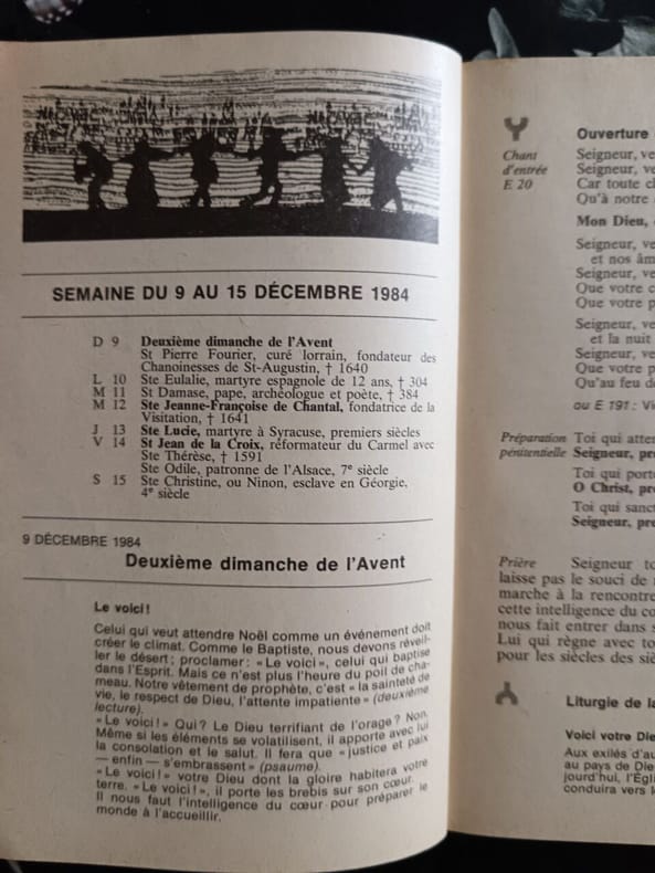Edition liturgique collective. 1984. In-12. Broché. Etat d'usage, Couv. défraîchie, Dos fané, Papier jauni. 512 pages - quelques illustrations en noir et blanc dans le texte - pliures - coins frottés - annotations sur le 1er plat.. . . . Classification Dewey : 220-Bible