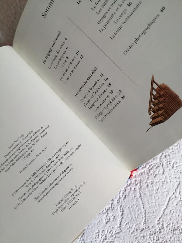 1ere édition en français Contents, Chapitres : 1. Notions préliminaires d'anthropologie : Introduction - Pulsions comme centre de l'expérience humaine vécue - Pulsions primaires - Pulsions réactionnelles, les besoins - Ambivalence des pulsions - Antinomie des interrelations humaines - Antinomie entre l'homme et le monde - Les formes de la maîtrise de l'ambivalence - 2. Le rêve, miroir de la vie éveillée - 3. L'ambiance naturelle des rêves - 4. Le rêve dans les conditions artificielles - 5. Table des modèles de rêves : Rêves manifestes les plus simples de besoins au caractère de désir infantil - Rêves combinés de besoins au caractère conditionné de désirs infantiles - Rêves appartenant au 1er et 2e groupes avec participation de peur bien prononcée - Les rêves moyens avec 2-4 césures forte mouillure affectant le coin du plat superieur et celui des 50 premieres pages, principalement dans les marges (le texte n'est pas affecte) - papier legerement gondole et jauni, cela reste un bon exemplaire de lecture